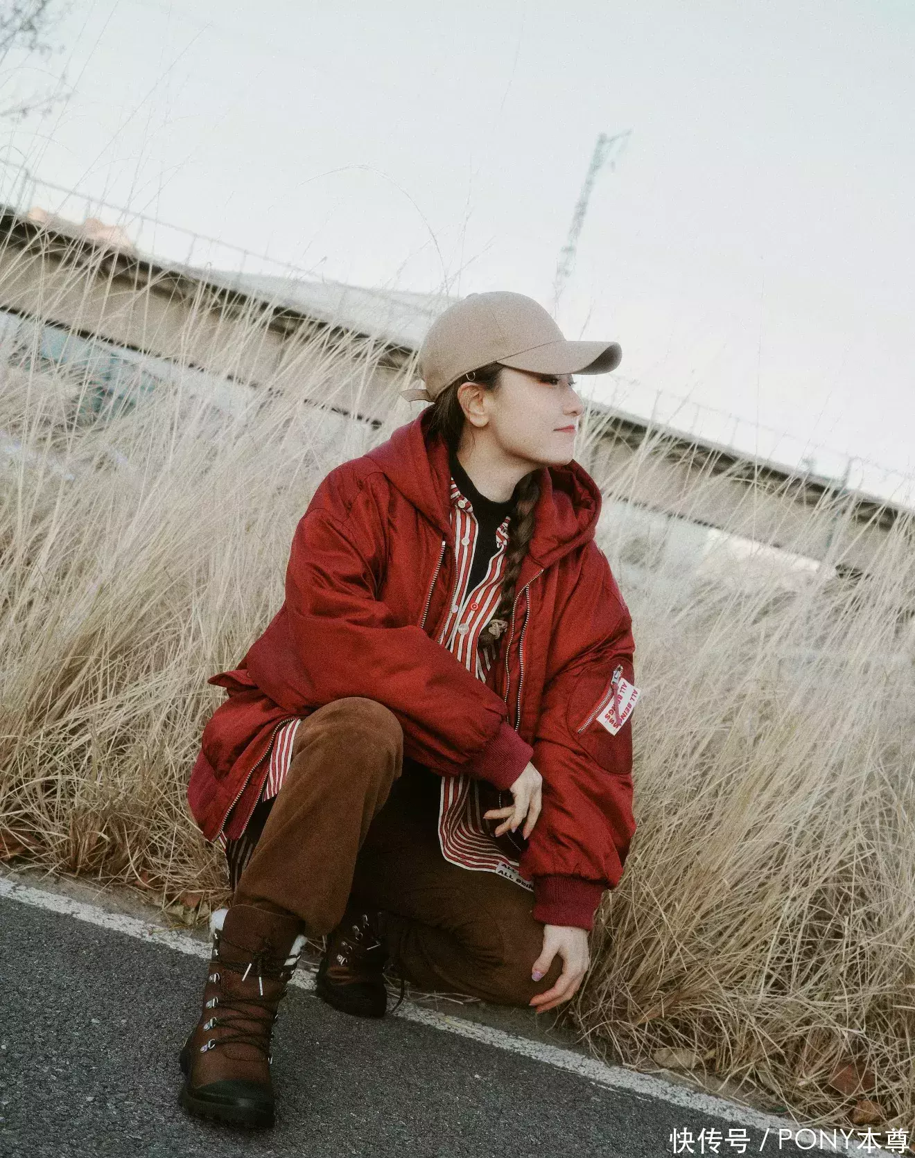 配饰与发型的选择,更是让减龄感翻倍。卡其色棒球帽简约百搭,既修饰了头型,又为造型增添了休闲活力,中和了红色棉服的正式感;单扎麻花辫温柔灵动,垂落在肩头,既避开了披发的拖沓,又比双麻花辫更显精致,与棒球帽搭配,瞬间拉满少女感。40 岁的白冰在这套造型中,没有刻意追求 “装嫩”,而是通过休闲配饰与发型,让成熟气质中透着灵动活力,美得自然又真实。